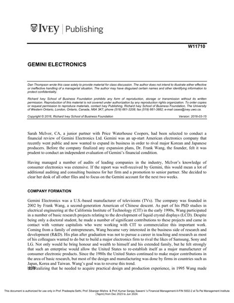 [UniqueID] - Read Online GEMINI ELECTRONICS CASE STUDY PDF